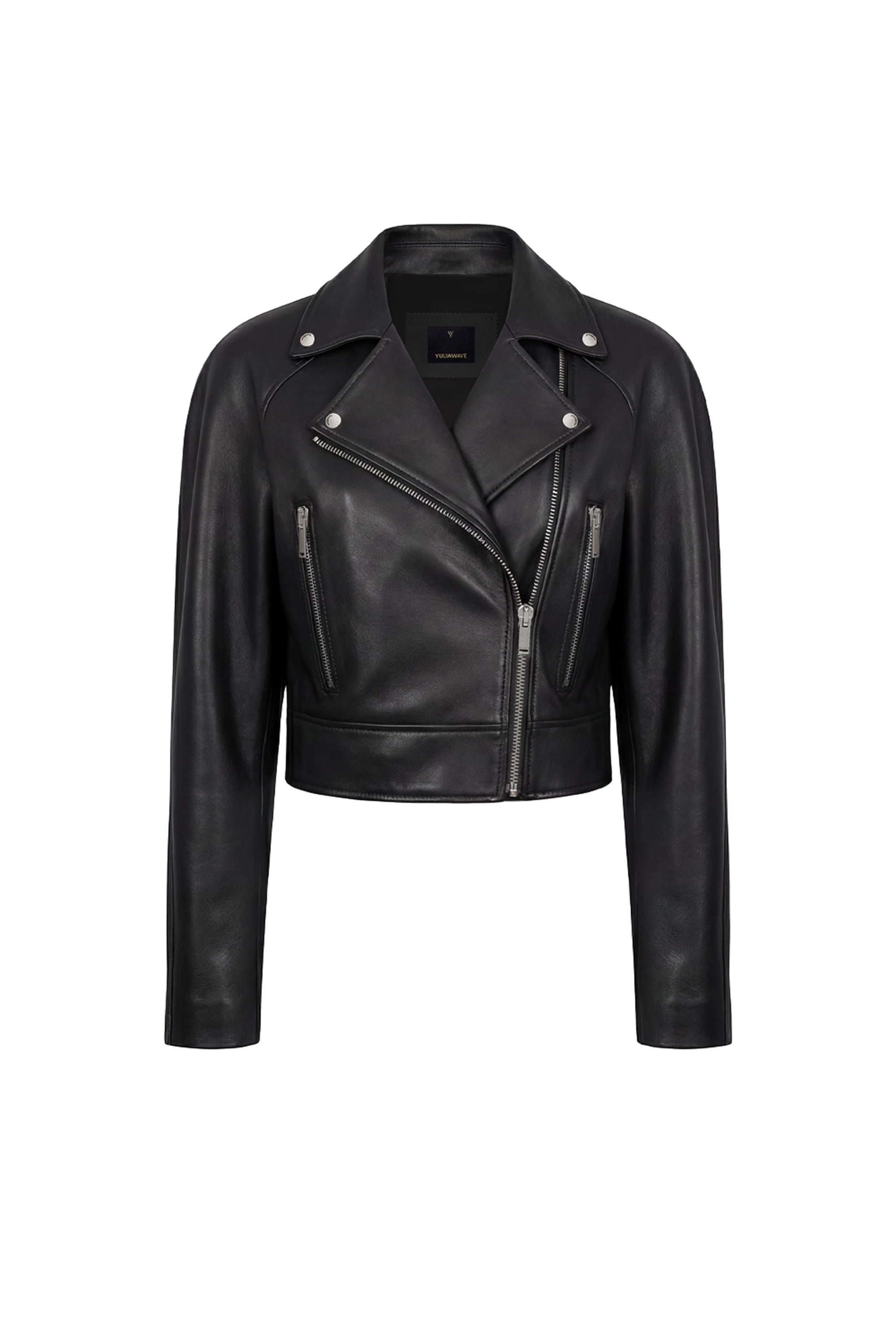 Укороченная кожаная куртка с гравировкой