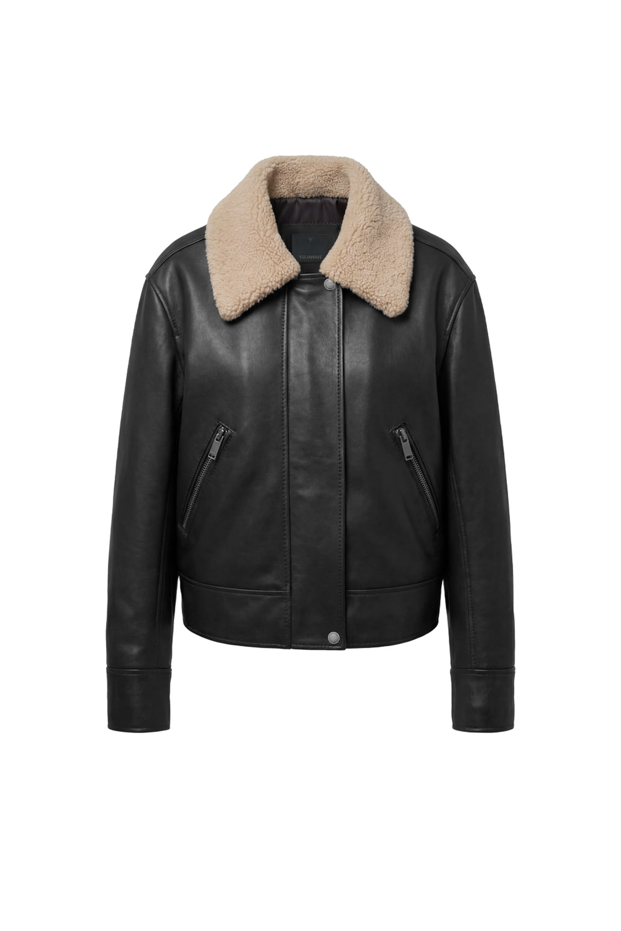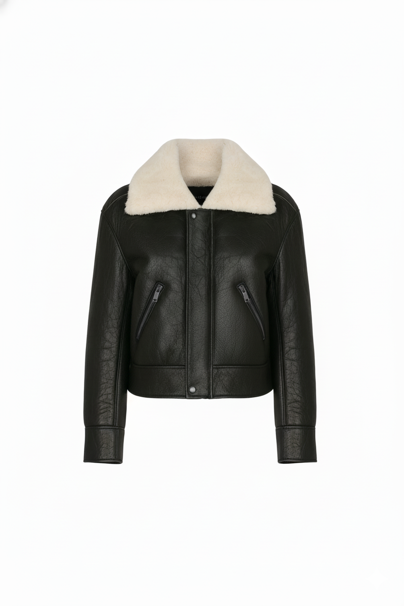 Кожаная куртка со съемным меховым воротником
