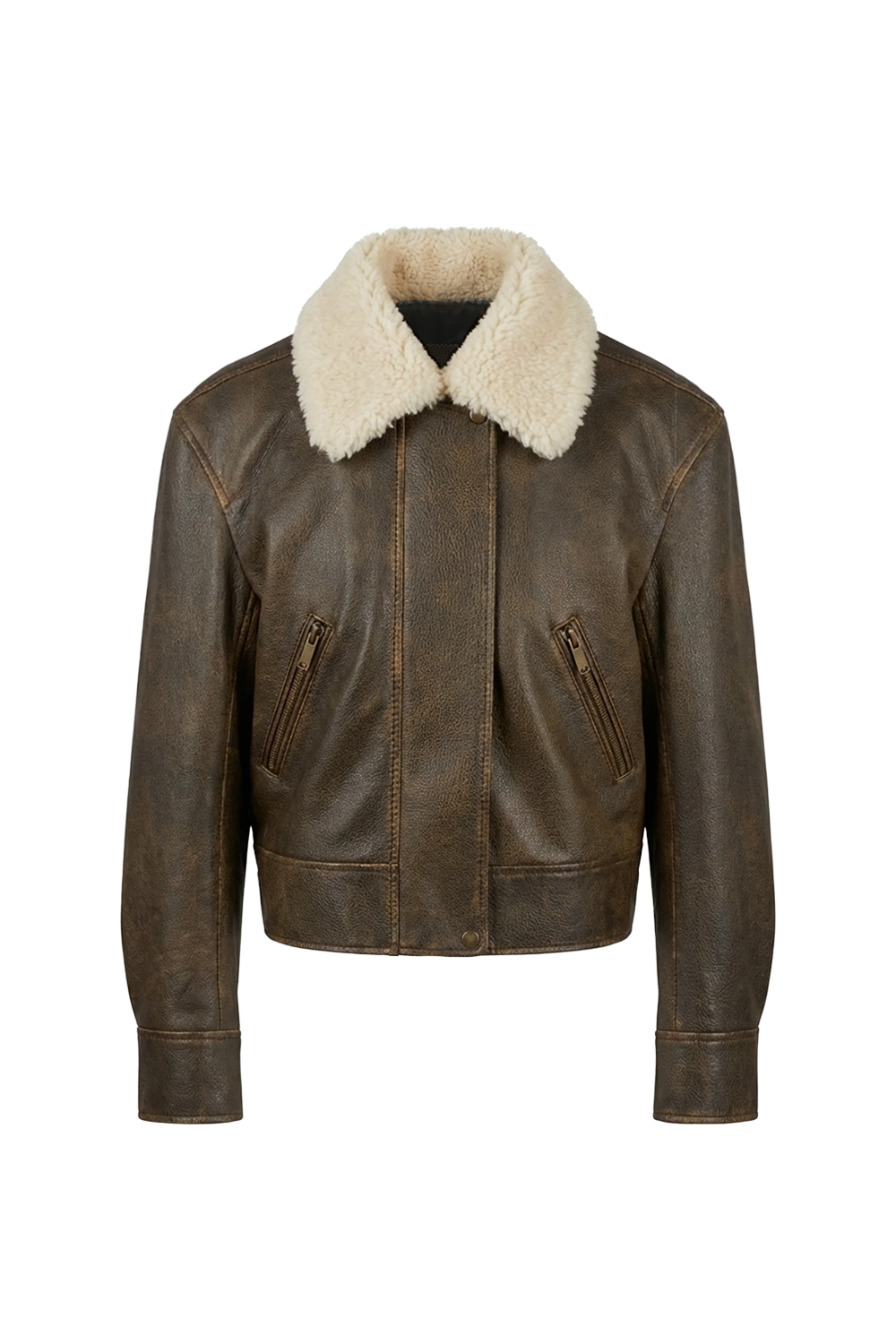 Косуха в винтажном стиле с подплечниками коричневого цвета